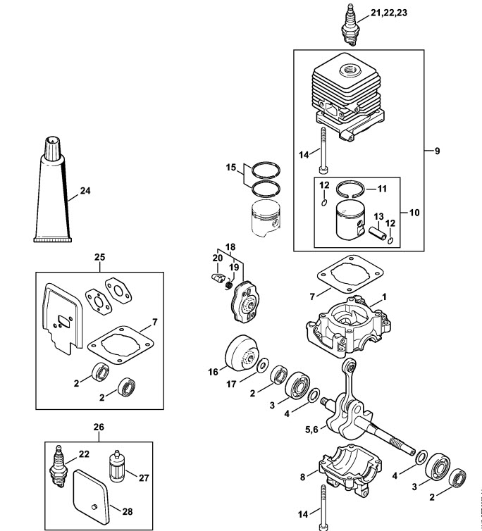 Цилиндр-коленвал мотокосы FS38 FS55